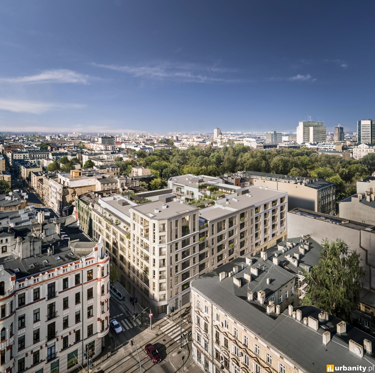 Apartamentowiec z naturalnego piaskowca domknie pierzeję przy skrzyżowaniu w Nowym Centrum Łodzi